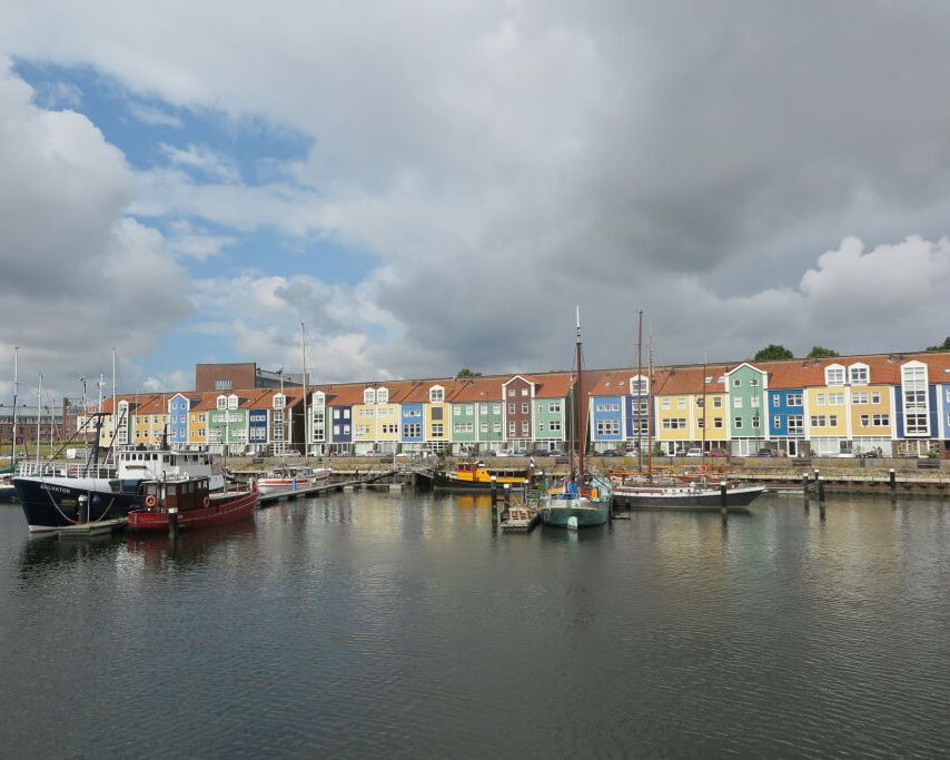 De kleurige haven van Hellevoetsluis vrolijkt je altijd op, somber winterweer of niet. |